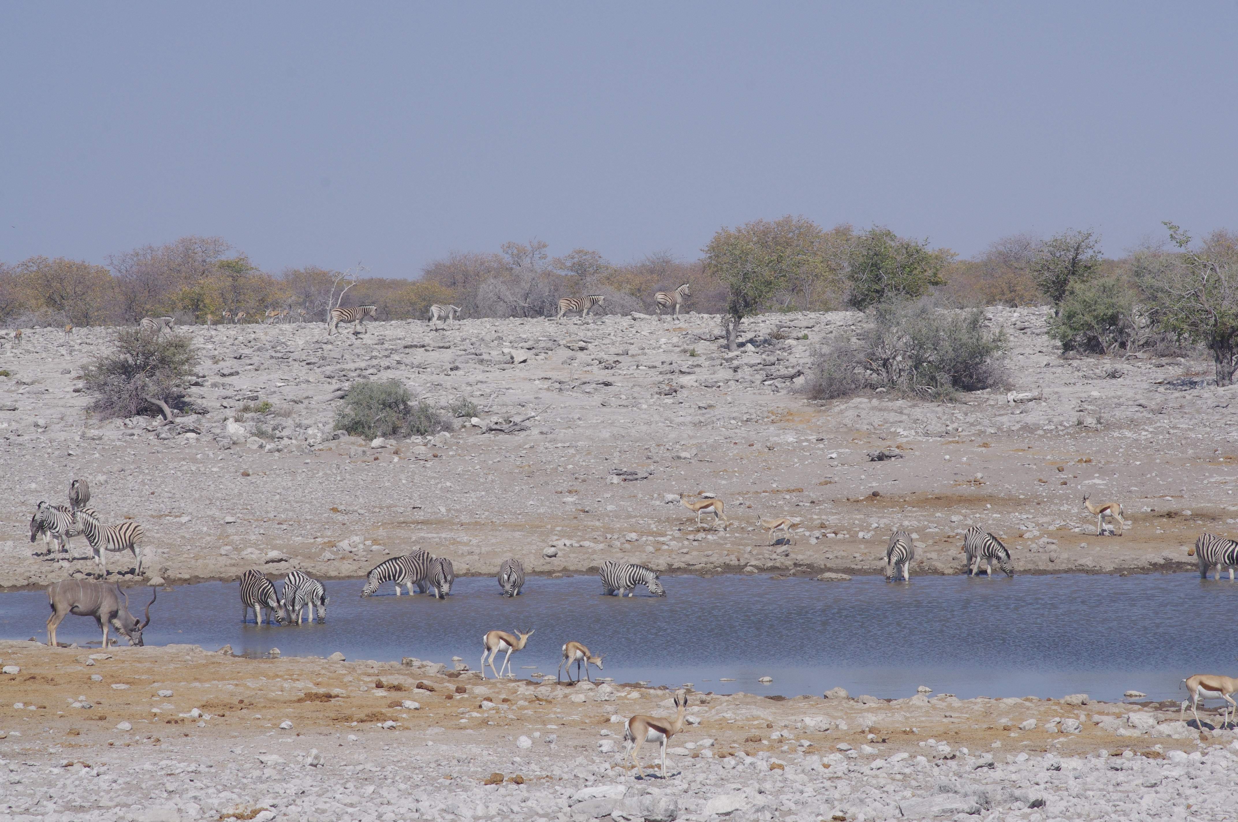 Sur le chemin, après avoir croisé des koudous, un petit détour permet d’aller au point d’eau d’Ombika. Pendant qu’on y est, nous décidons d’y passer une tête.