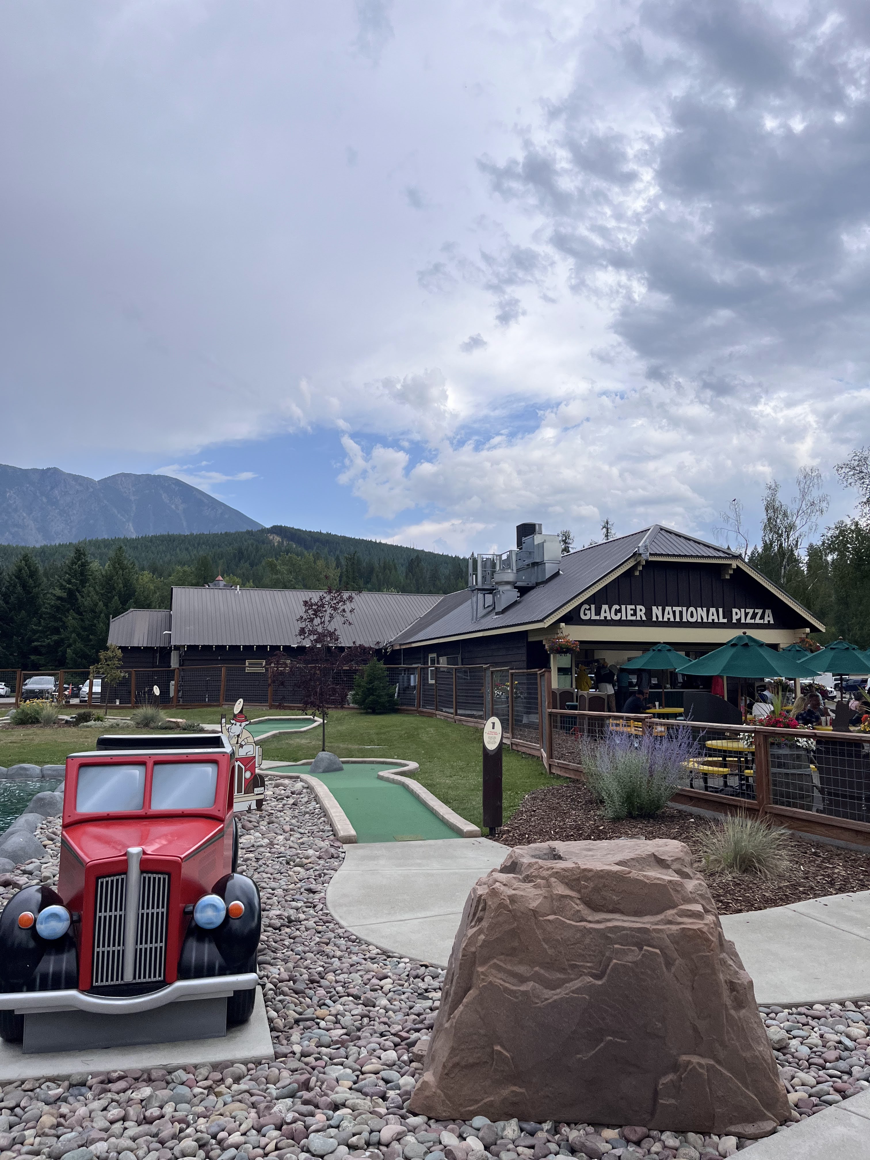 Pour nous, ce sera une pause. Nous avons repéré qu’il y a un mini-golf et les enfants adorent (je continue à les appeler « les enfants » même s’ils ont maintenant 20 et 24 ans…). Le village de West Glacier semble très sympathique. Il n’est pas très étendu mais on trouve un visitor center, une station service, des boutiques, un supermarché, des bars et restaurants et, donc, un mini-golf.