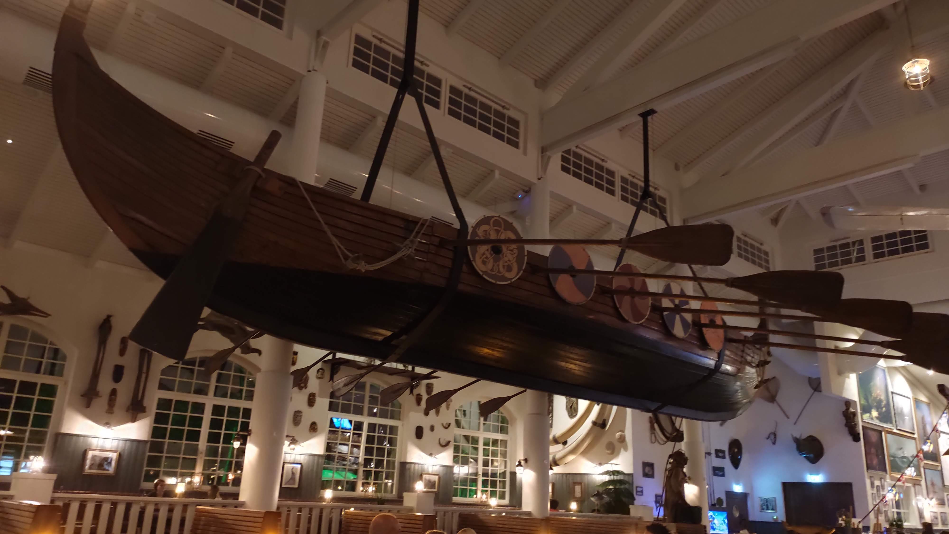 Cet hôtel est impressionnant ! Il est immense, à tel point qu’un drakkar est carrément pendu au-dessus de nos têtes dans la salle de restaurant.