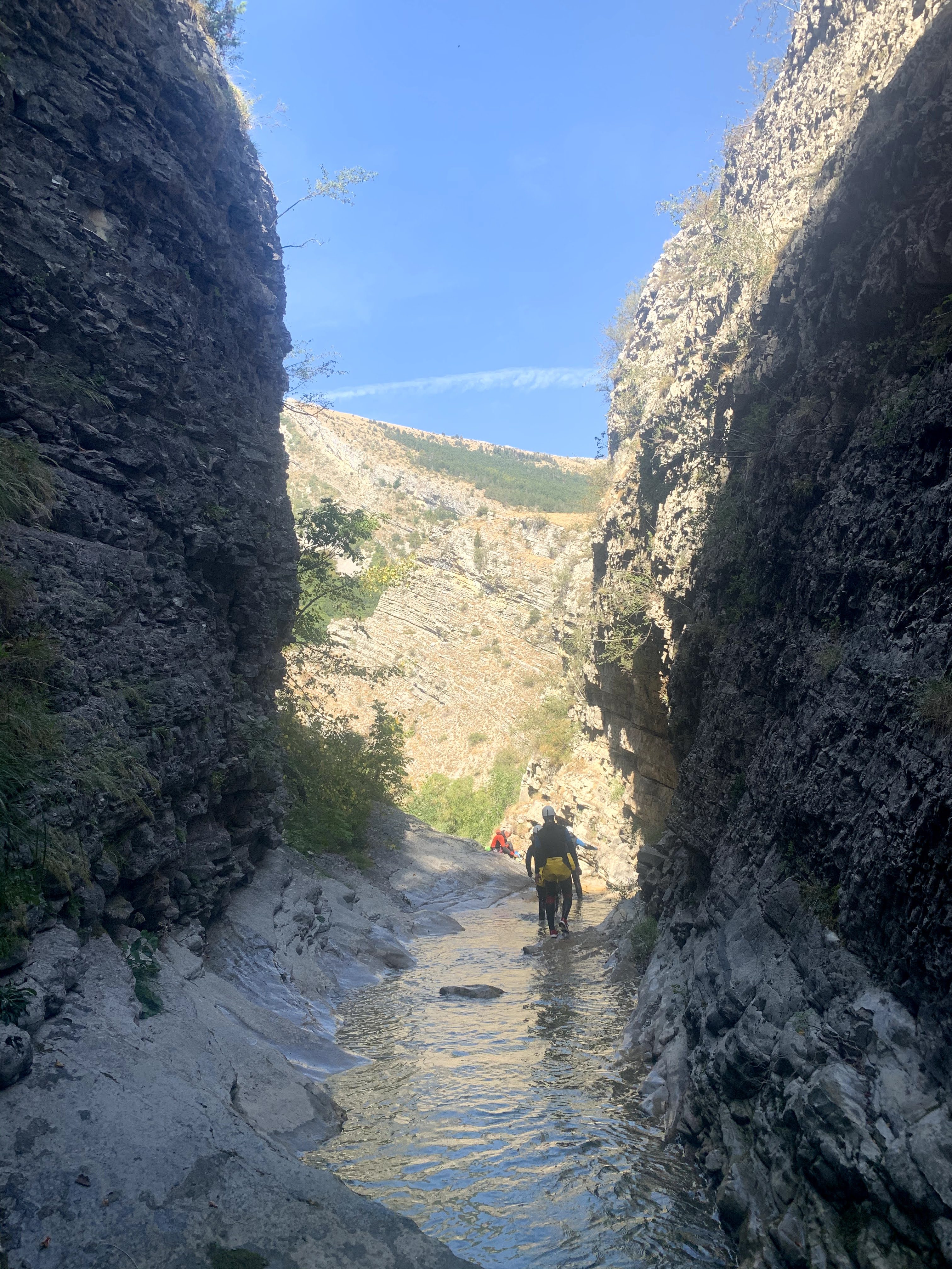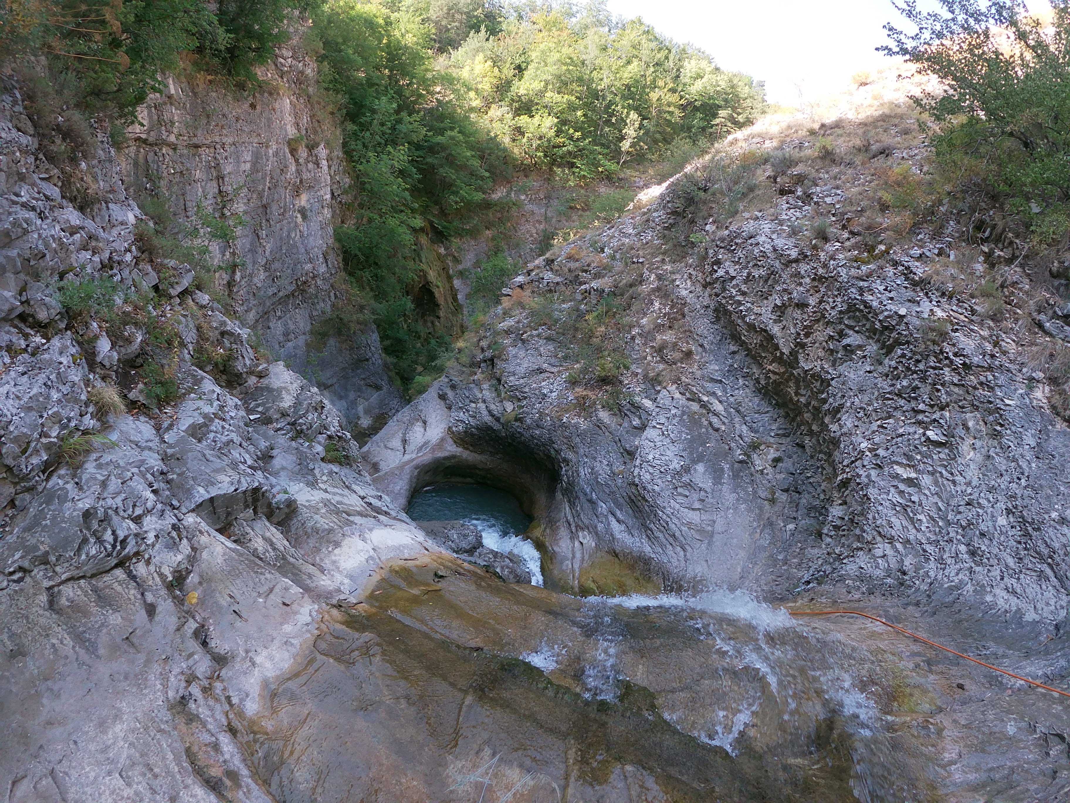 Nous continuons à marcher dans le lit du ruisseau, le décor encaissé est superbe.