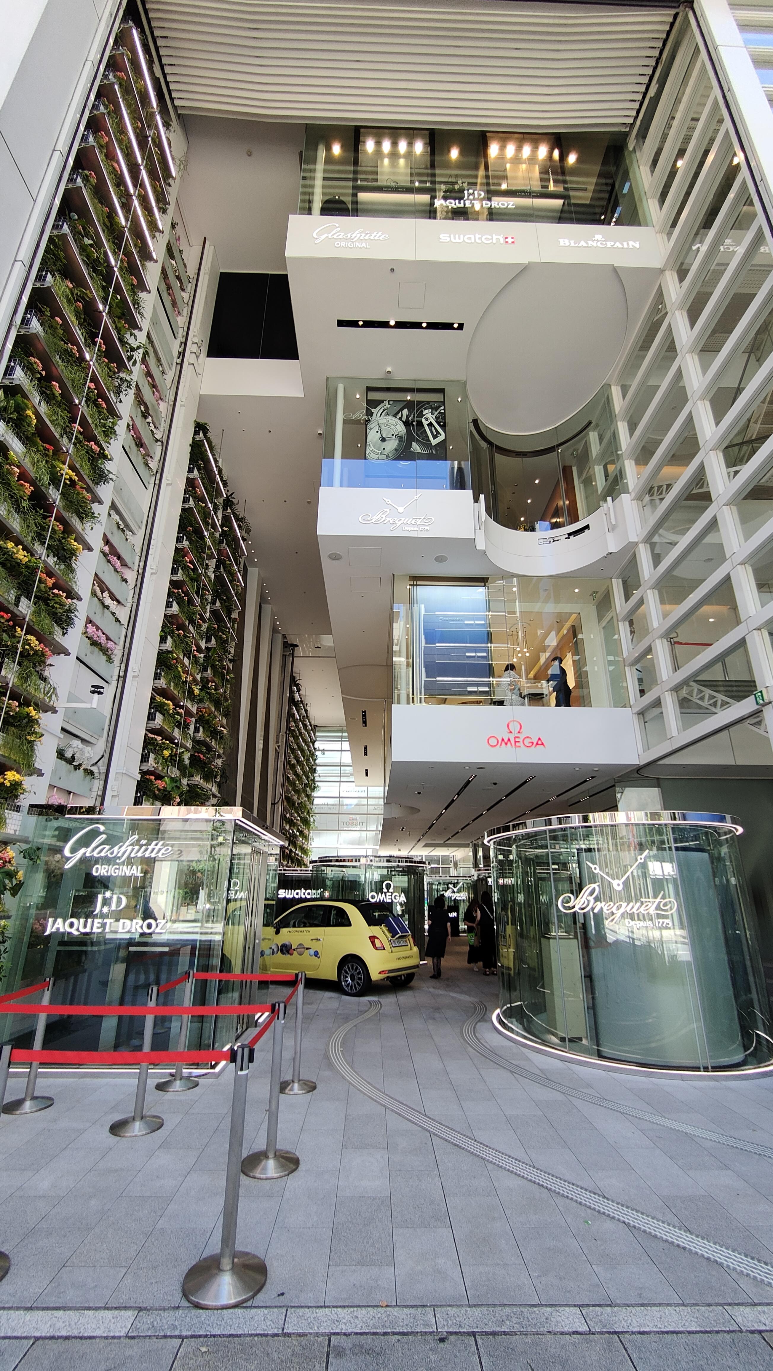 Lors de notre seconde étape à Tokyo, nous sommes retournés à Ginza pour notamment visiter le centre commercial Ginza Six. Bon… il faut avoir un compte en banque bien fourni pour l’apprécier puisqu’on n’y trouve que des boutiques de luxe. Ceci dit, le centre est magnifique et il dispose d’un rooftop depuis lequel on est censé avoir une belle vue sur Tokyo Tower. Le rooftop est en effet agréable mais pour la vue, nous ne l’avons pas trouvée…