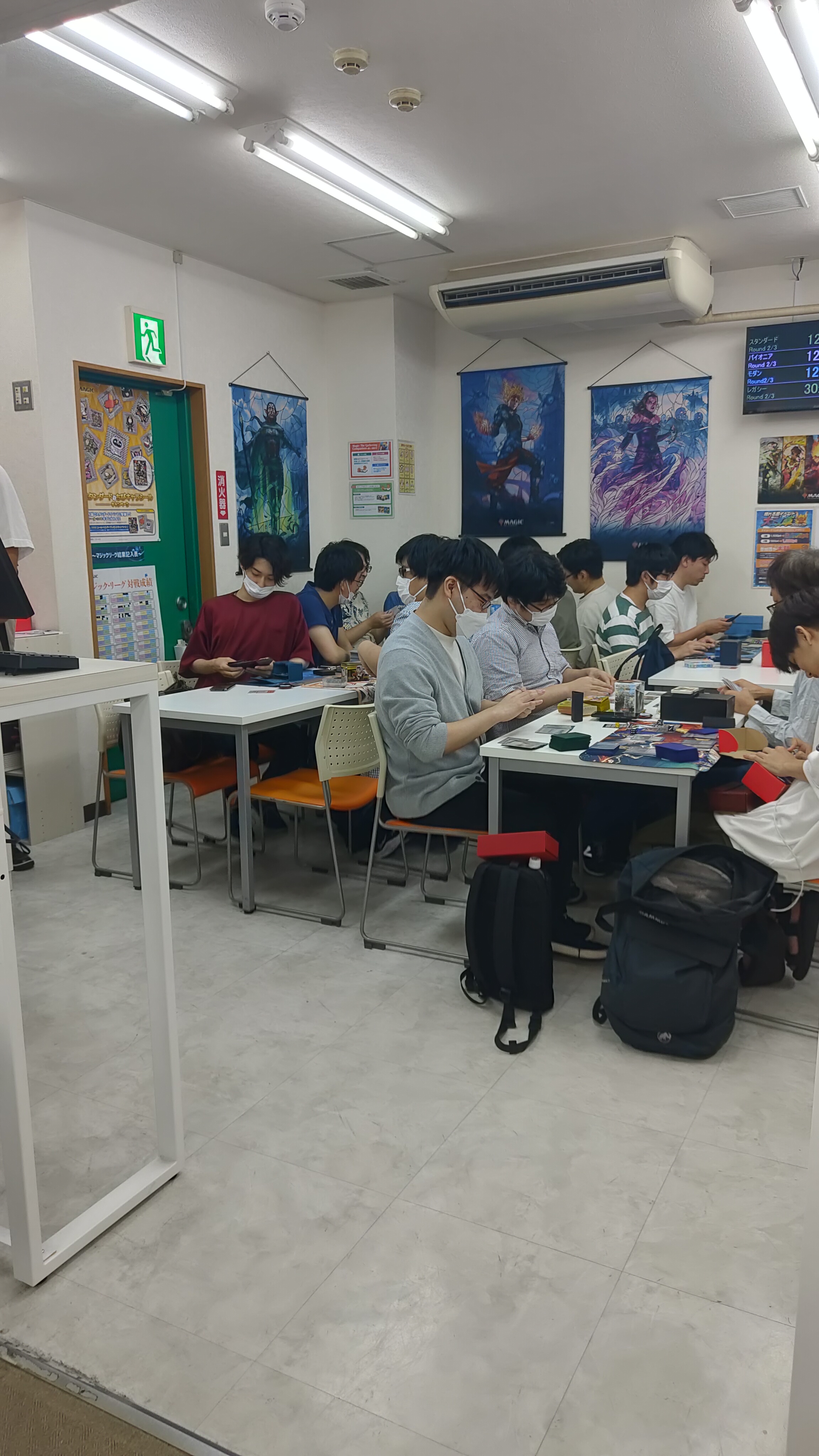Lorsque la porte de l’ascenseur s’ouvre, nous entrons dans la boutique Hareruya Akihabara et, après avoir mis le clavier d’un ordinateur en Anglais, Thomas peut chercher ses précieuses cartes (mais pas aussi précieuses que la carte à 100 000 € que nous avons vue dans une boutique !). Dans l’arrière boutique se trouve une salle ou des joueurs font des parties de « Magic ». Même les toilettes sont dans l’ambiance. Nous nous mettons dans un coin en attendant (longtemps) que Thomas ait fait ses choix.