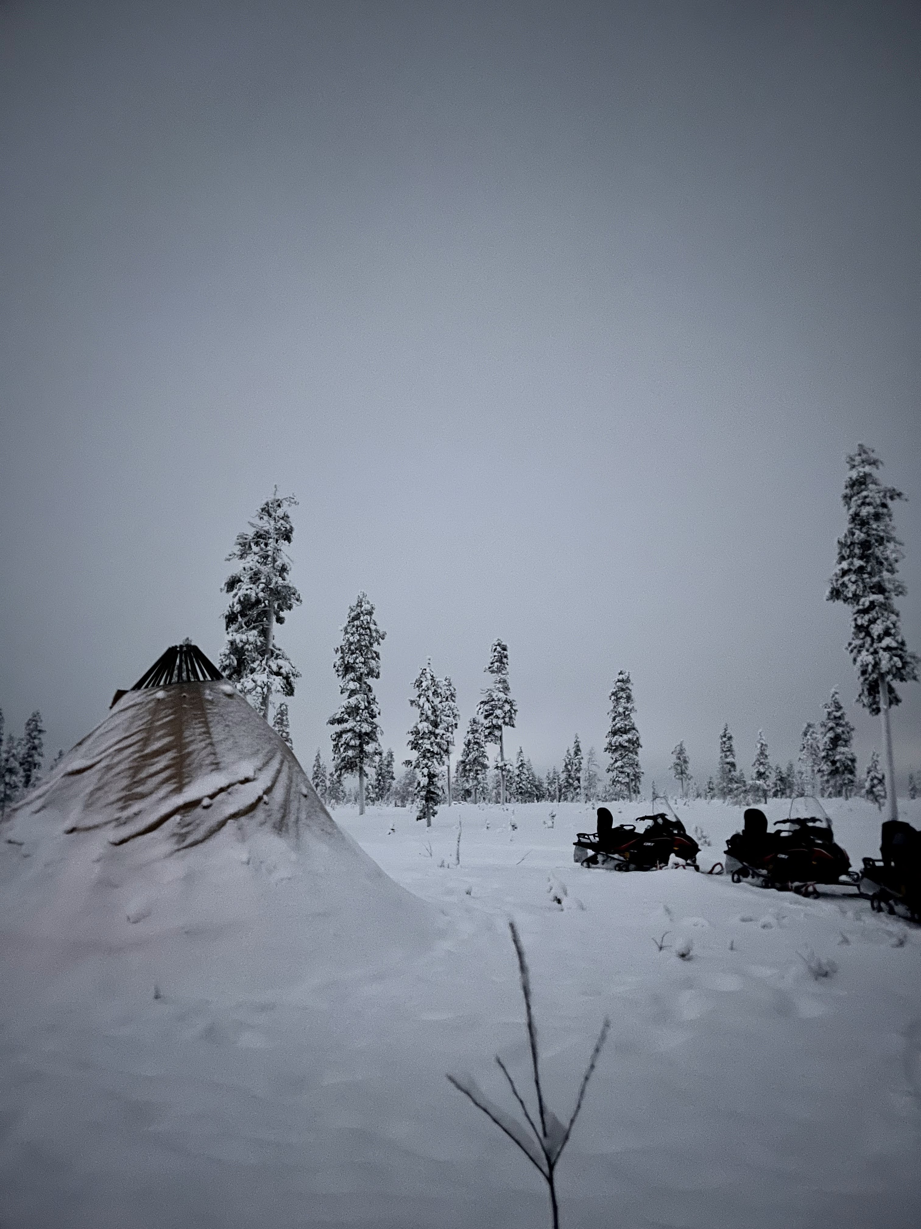 Nous terminons par une petite collation dans un chalet où une femme très souriante (c’est ironique…) nous parle de leurs traditions, des rennes, etc.