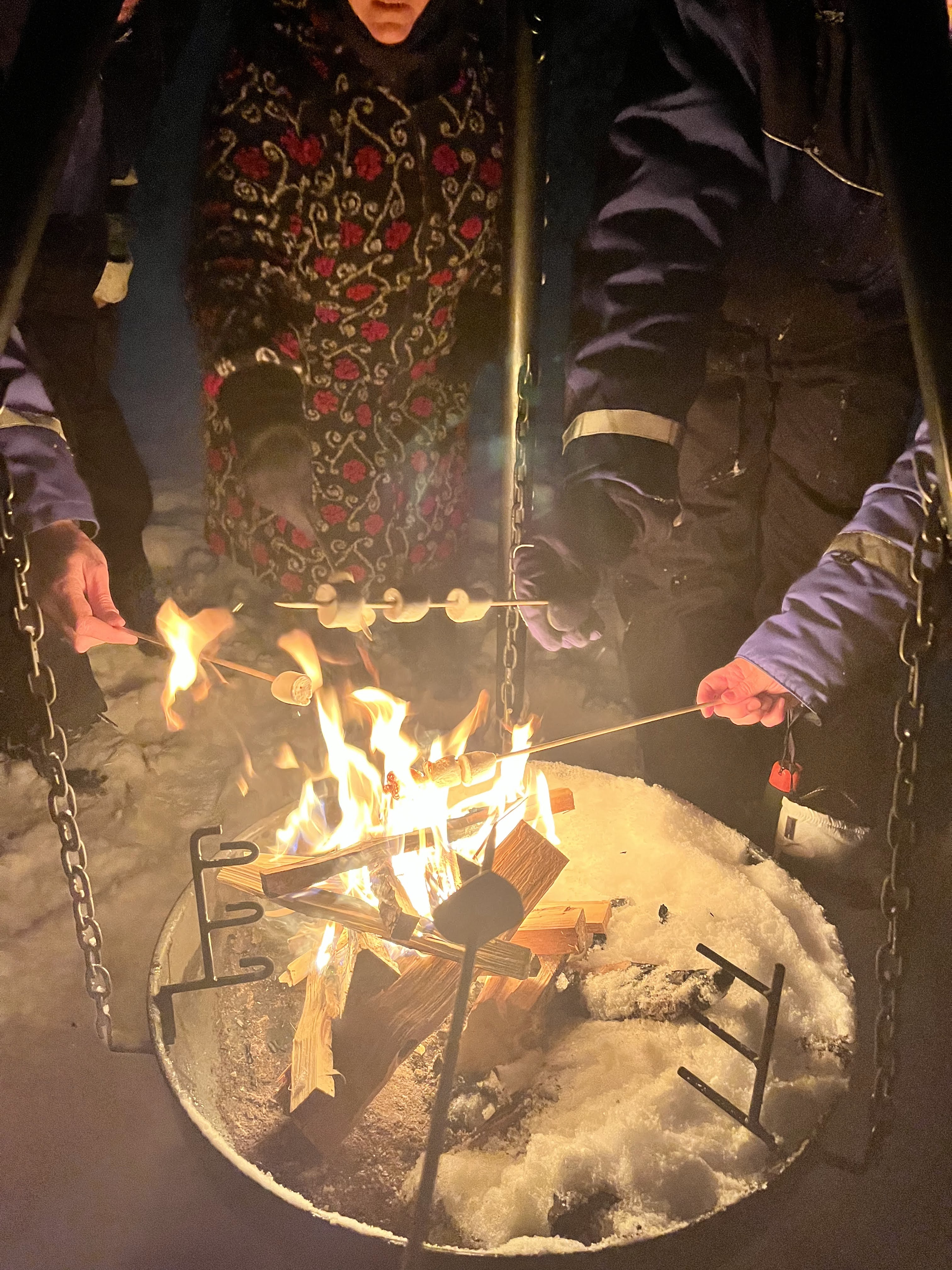 Effectivement, aucune aurore visible mais nous ferons une pause « grillade de chamallows » au feu de bois.