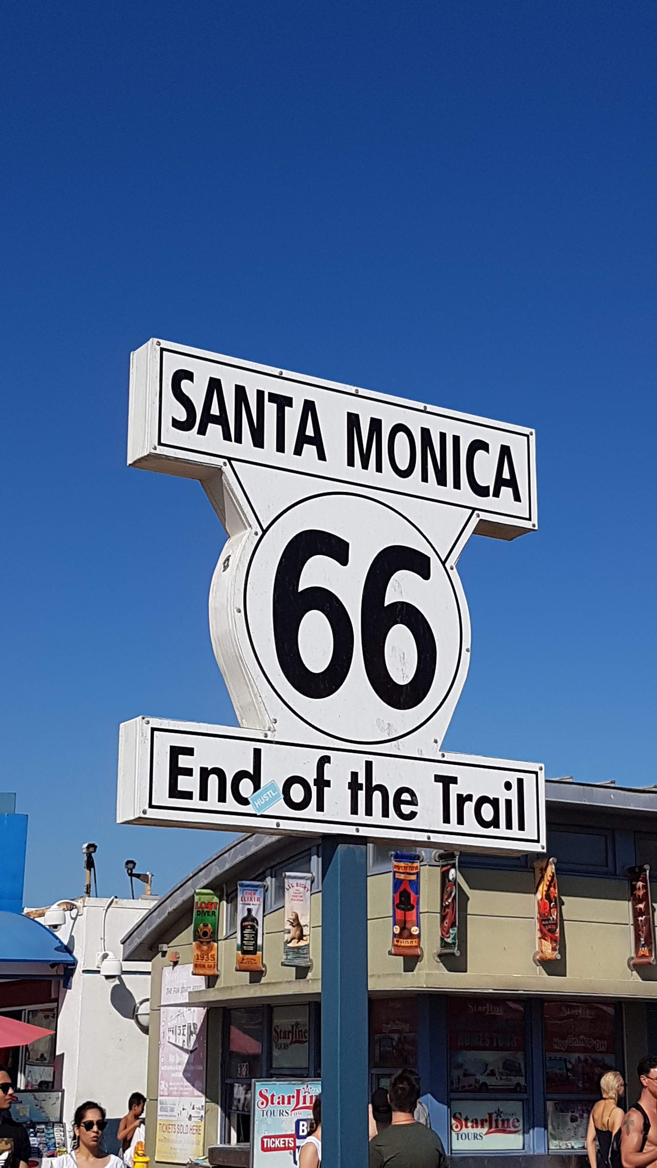 Nous déambulons au milieu des boutiques puis remontons pour prendre en photo le panneau qui témoigne de la fin de la route 66 à cet endroit précis.