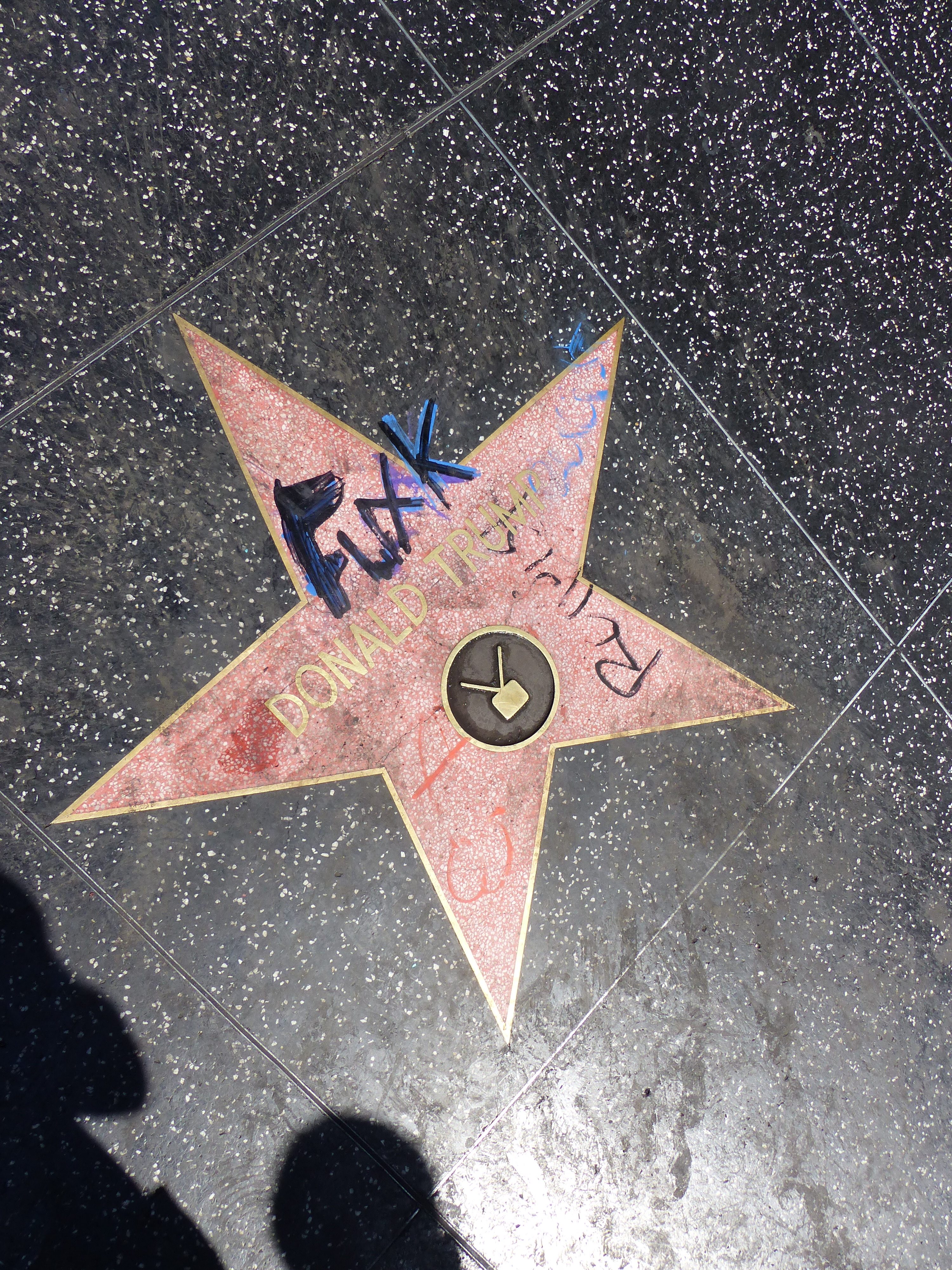 Nous tombons sur l’étoile de Donald Trump, taggée. Elle sera d’ailleurs détruite plus tard dans la journée