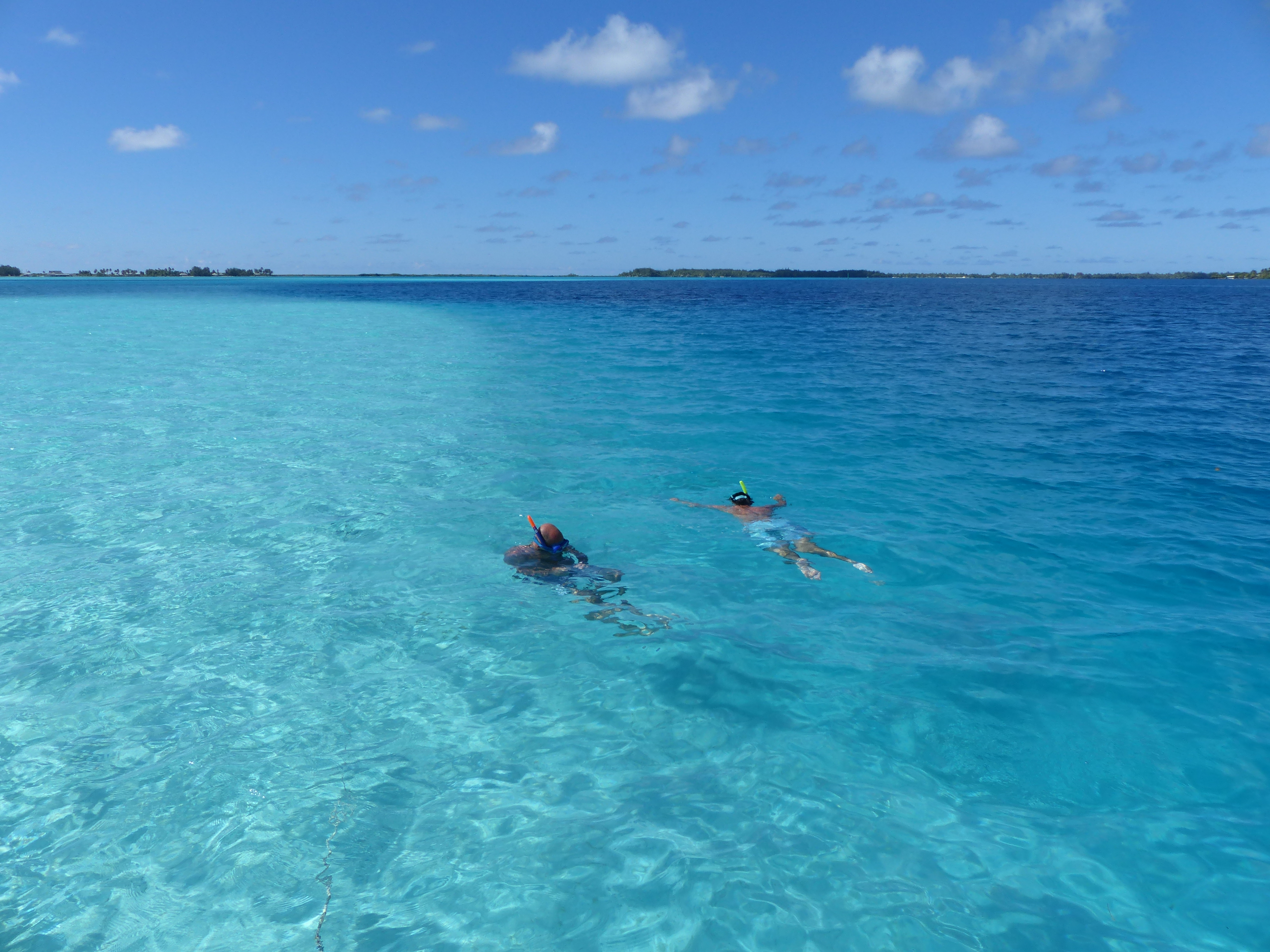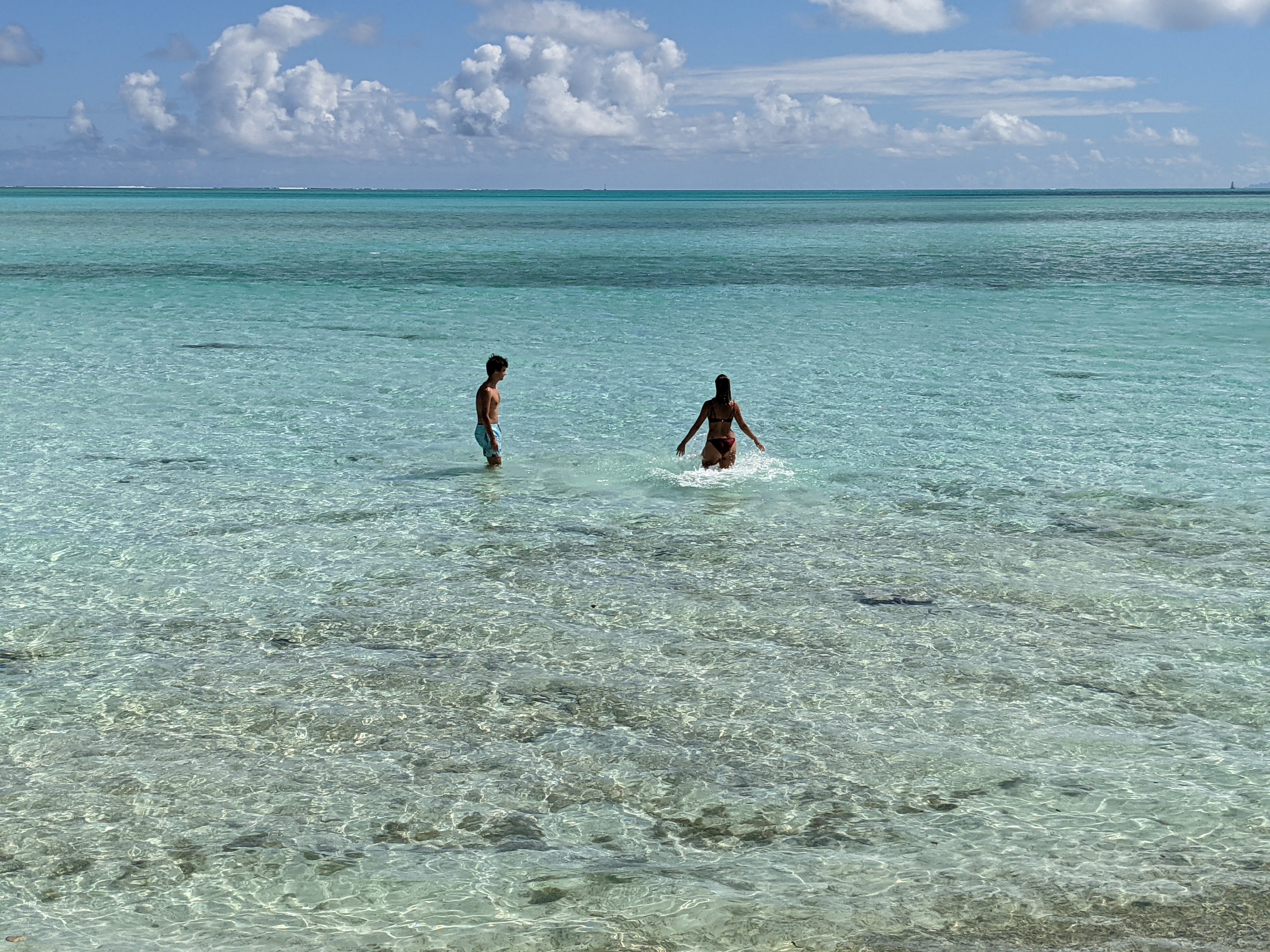 Les enfants, eux, en ont trouvé un autre. Nous comparons nos photos pour décider qui a trouvé le meilleur, sans parvenu à une conclusion. Dans tous les cas, les tons de bleus du lagon sont époustouflants.