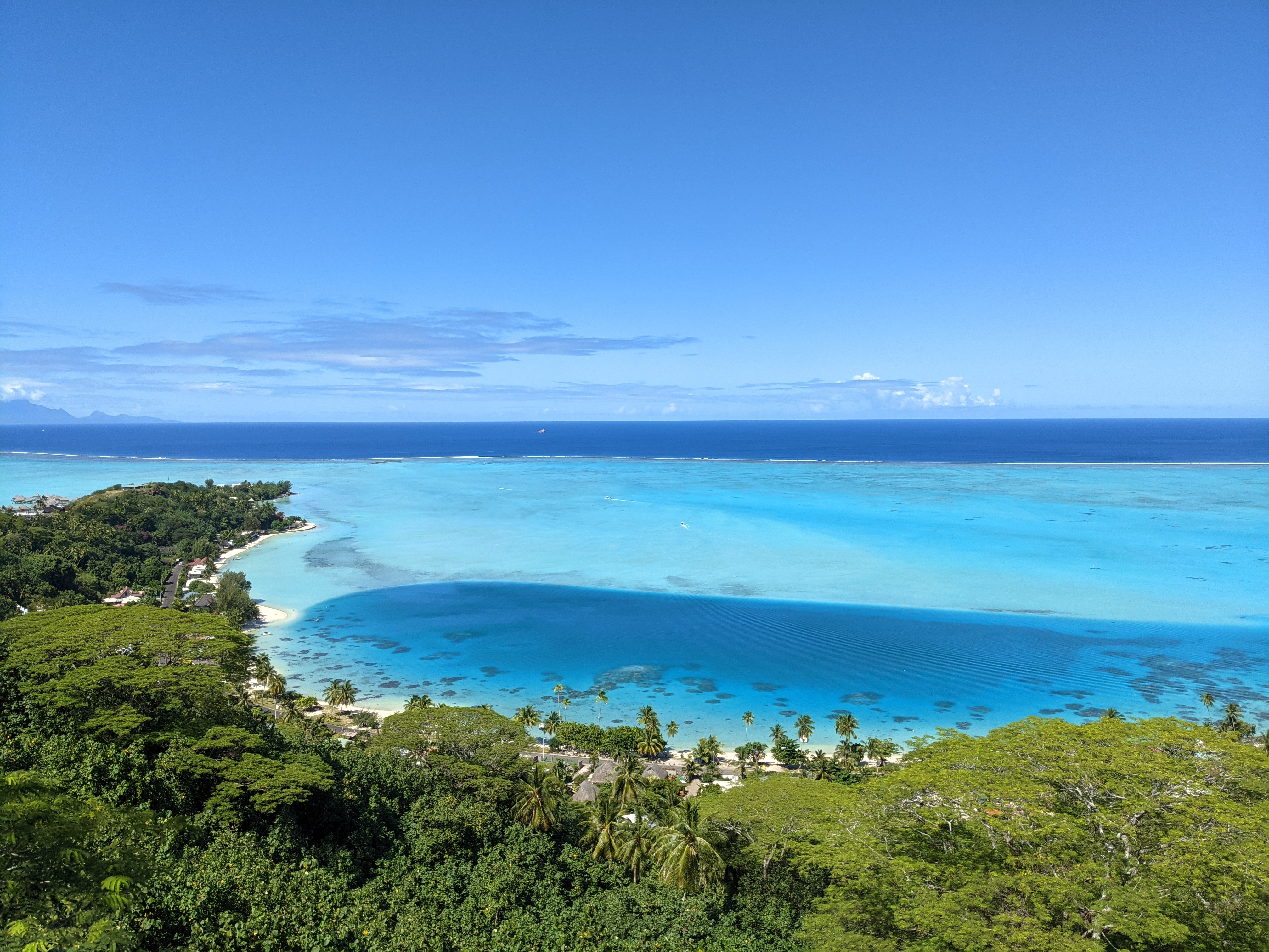 Une fois la pause terminée, nous reprenons notre route en remontant vers le Nord tout en longeant les hôtels de luxe, puis nous nous dirigeons vers le motu de Teva Victor.