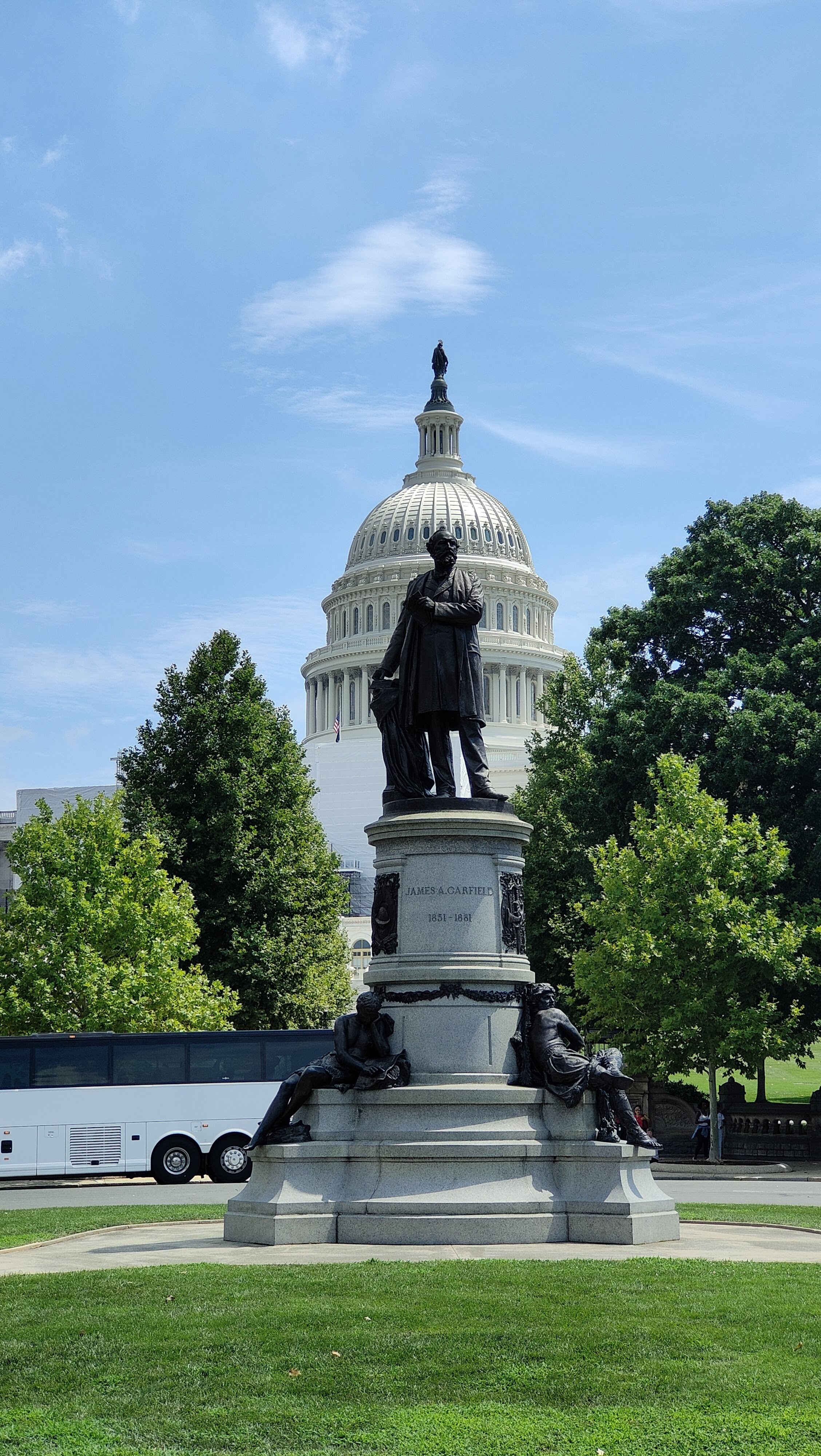 Nous arrivons à l’entrée du Capitol. Il faut reconnaitre que l’édifice en impose. Avec son dôme, ses colonnes et ses deux ailes, il est bien plus grand que nous l’imaginions.