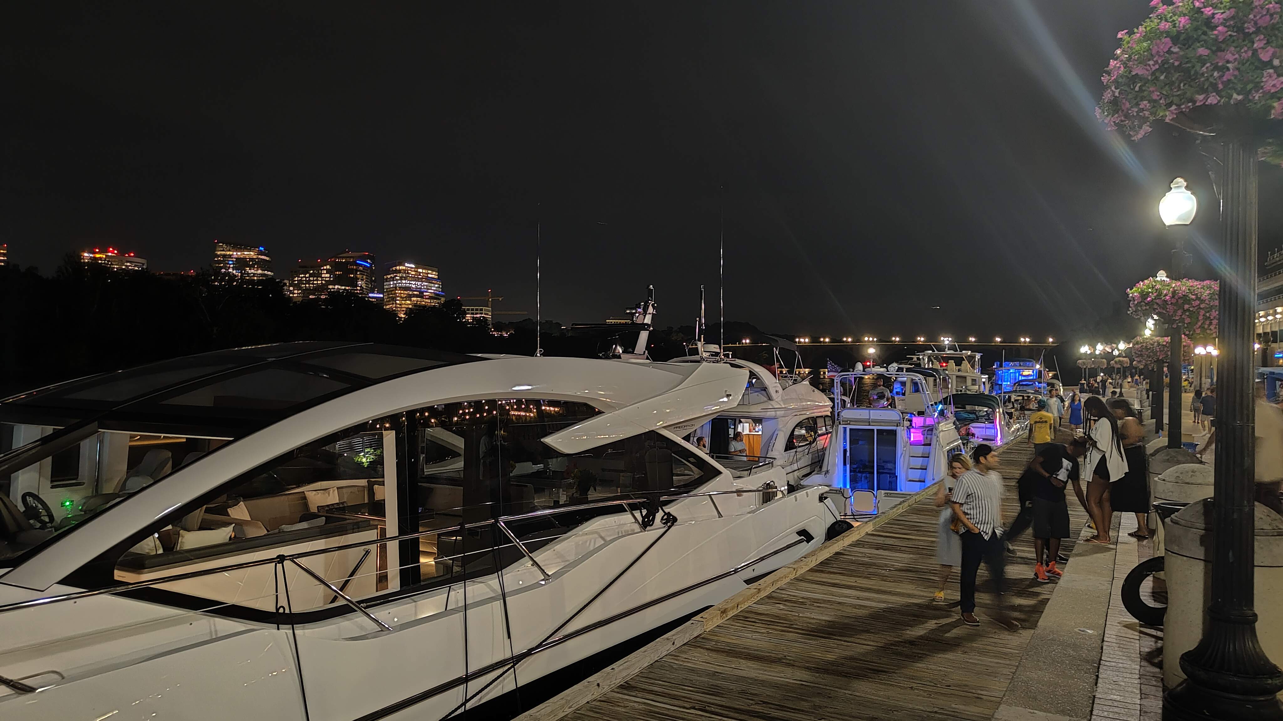 Ce soir, nous allons aller à Georgetown. Un quartier apparemment très sympa. Plus précisément, sur les quais pour nous faire un resto en terrasse. Nos reprenons des vélos et descendons le Mall de nuit pour ensuite prendre une piste cyclable qui nous amène au Georgetown Waterfront. Encore une fois on ne peut que vanter la facilité de circuler à vélo à Washington. Cependant, ce sera le seul problème que l’on aura avec nos vélos, les stations proches du Waterfront sont pleines… Il nous faudra aller un peu plus loin en ville.